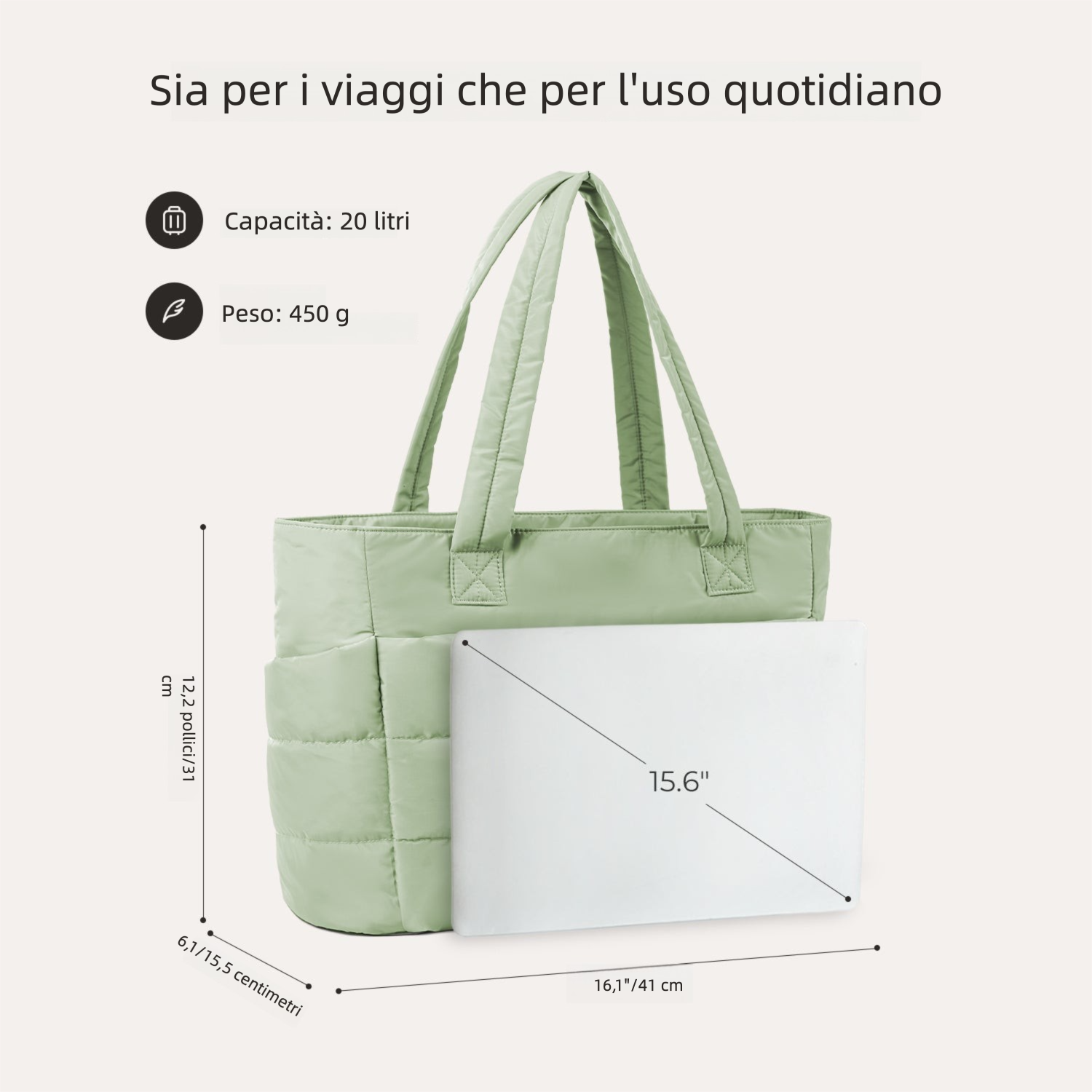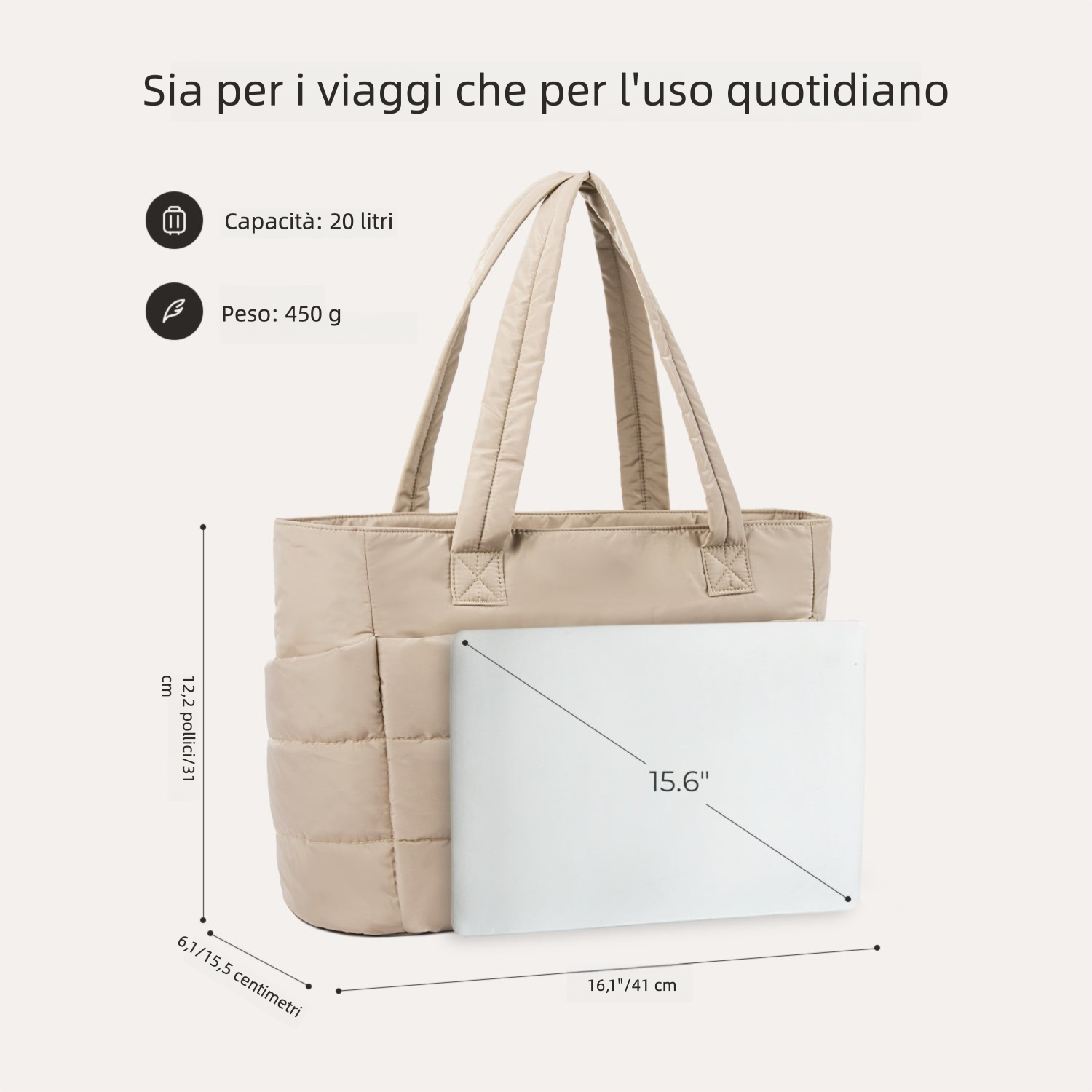La BAGSMART Puffy Tote da 20L è perfetta come borsa da lavoro, borsa per laptop, borsa da palestra, borsa mare, borsa a spalla casual o borsa da viaggio. Adatta per lavoro, spiaggia, viaggi, shopping, palestra e molto altro.