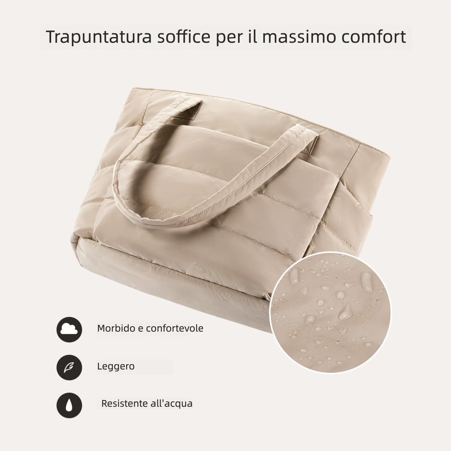 - Tessuto Taslan leggero, morbido e idrorepellente