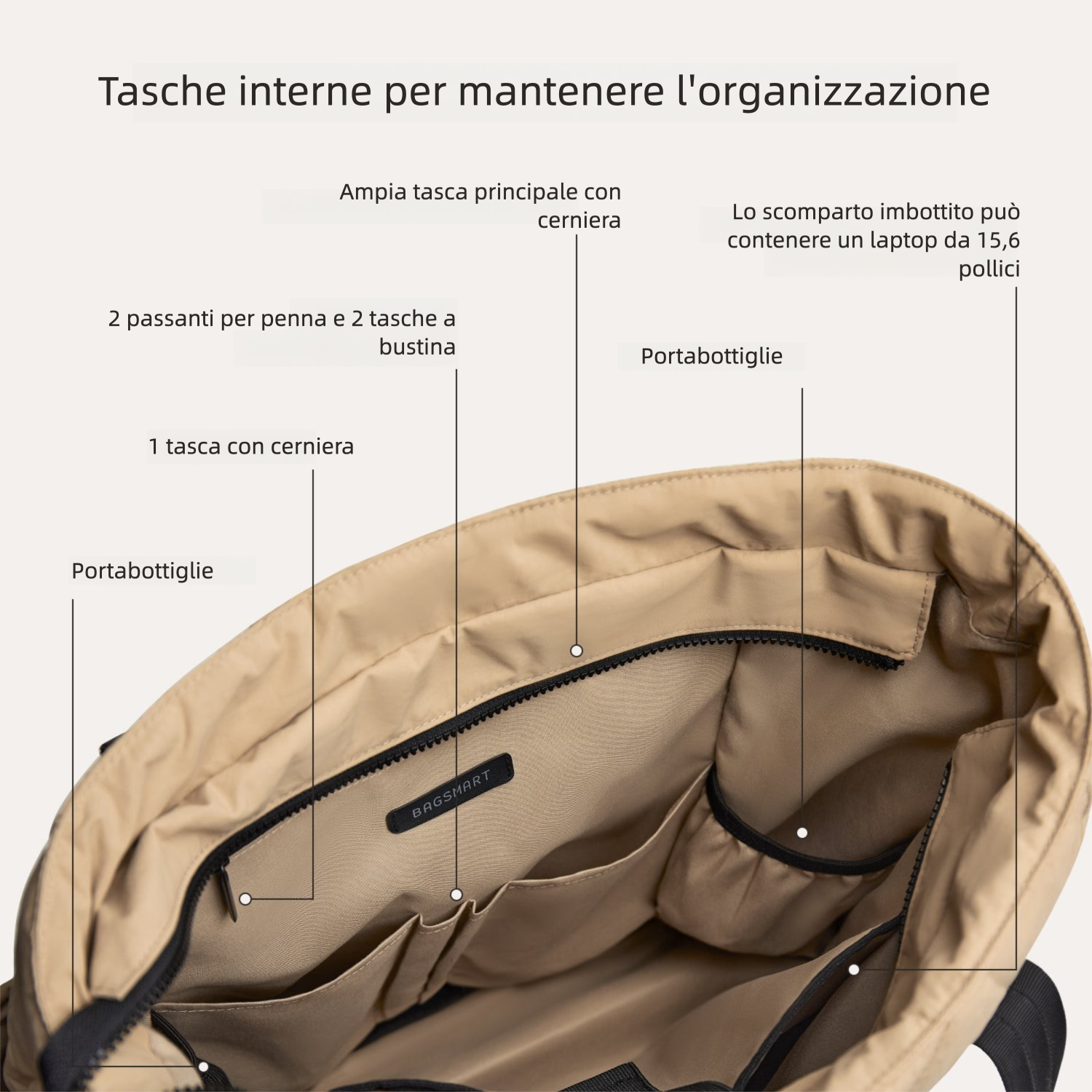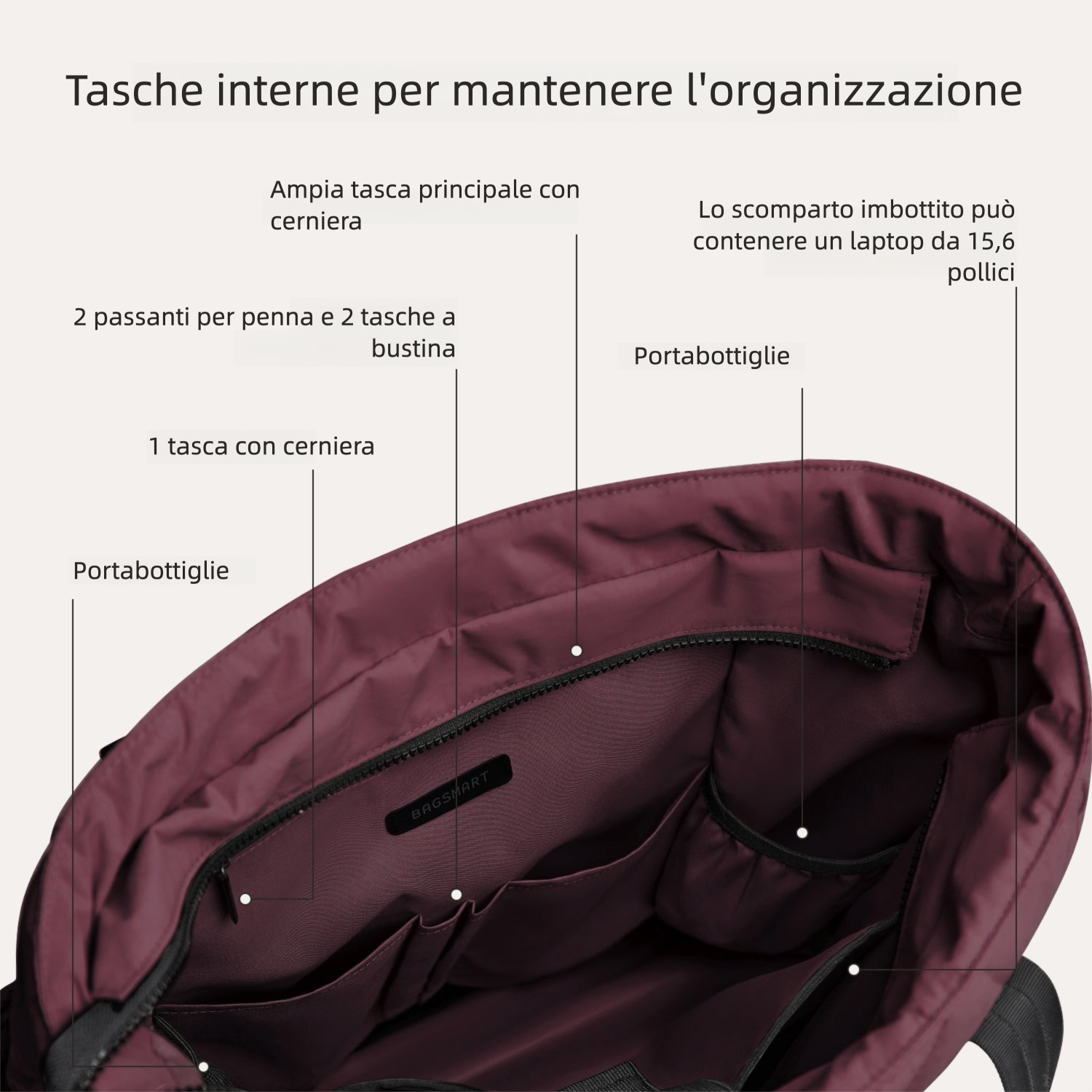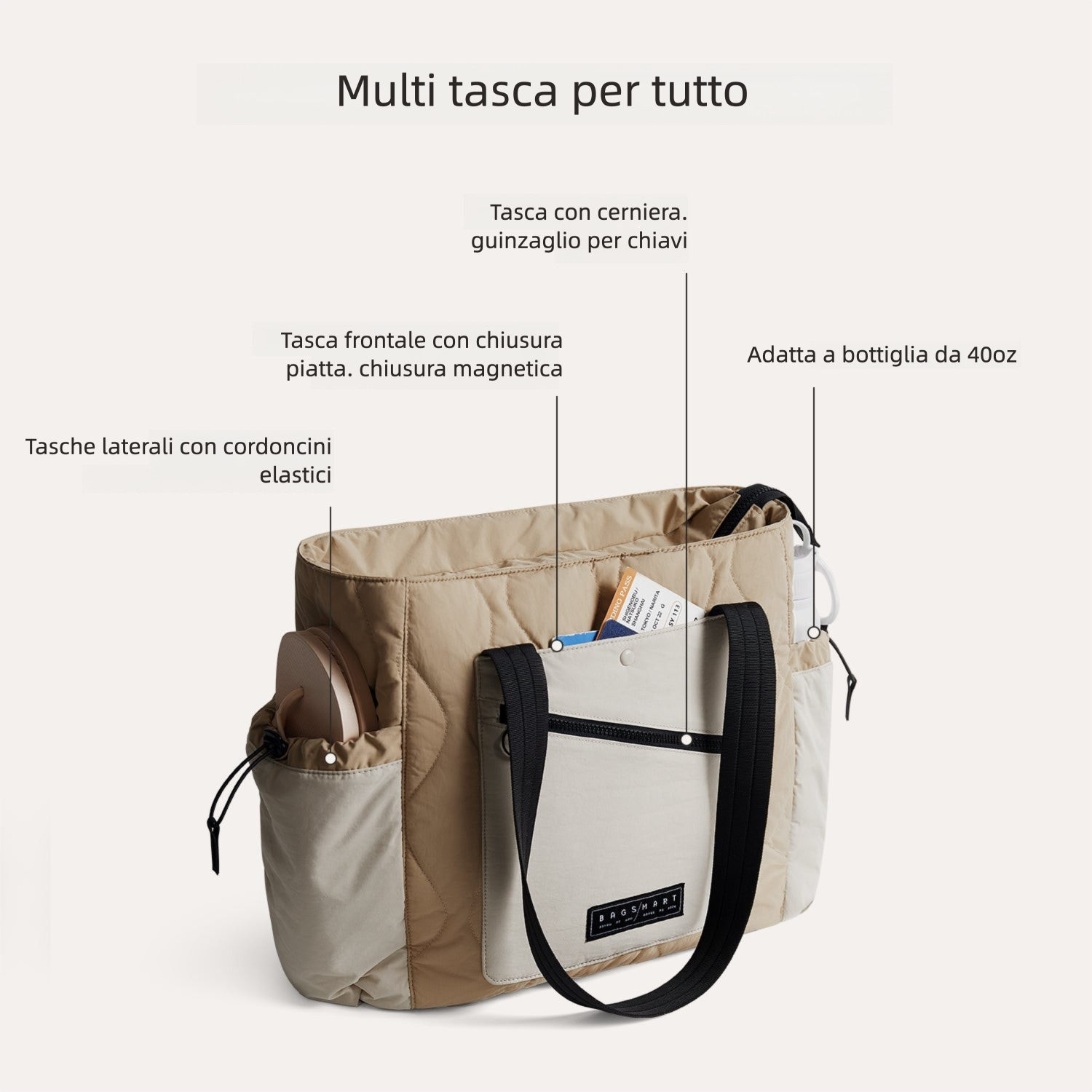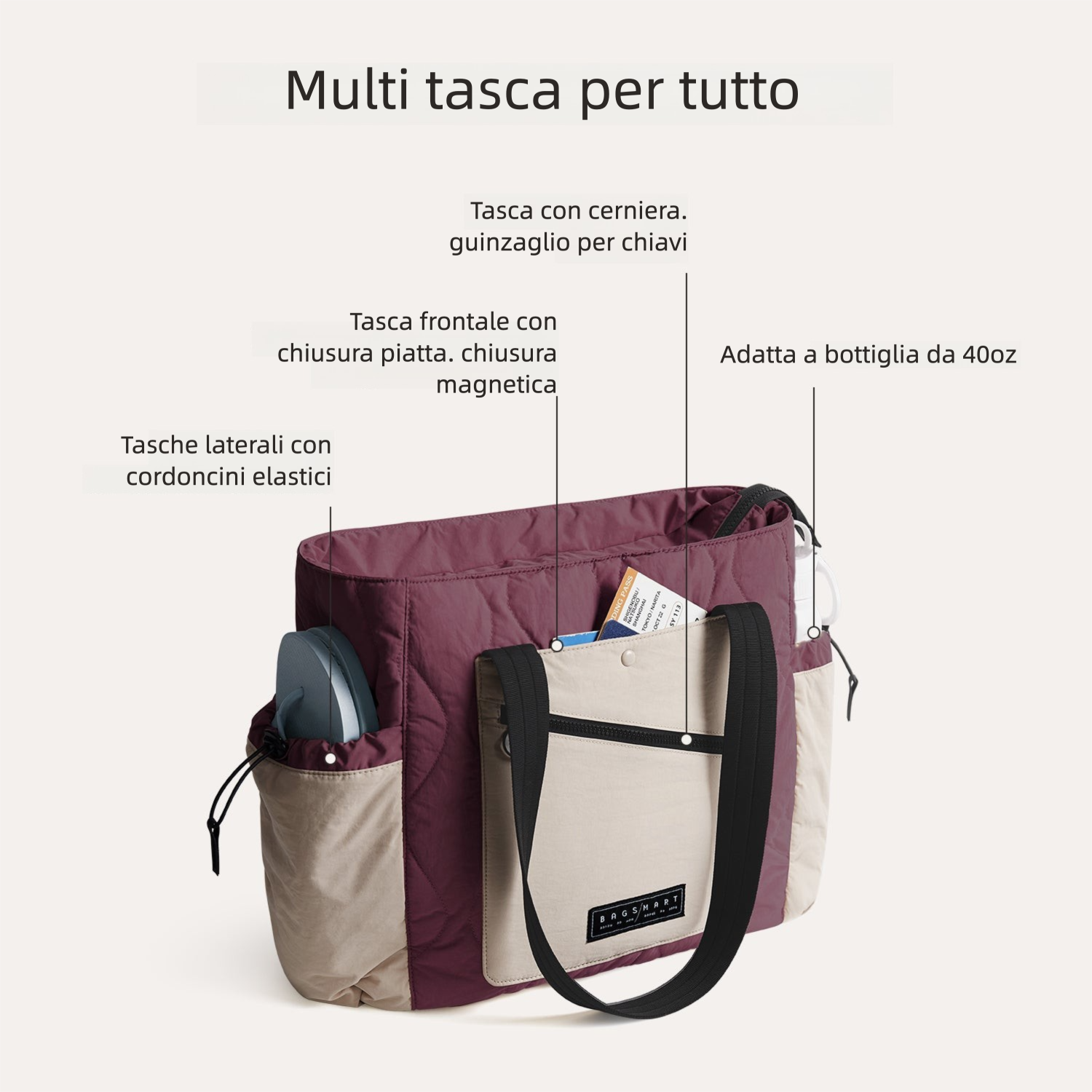 La Paz (Vega) Tote ti segue dal mercato al museo, dall’ufficio al weekend. Il tessuto trapuntato, leggermente imbottito, protegge i tuoi effetti personali, mentre il design con tasche multiple mantiene tutto in ordine. Rivenditore ufficiale autorizzato BAGSMART in Italia.