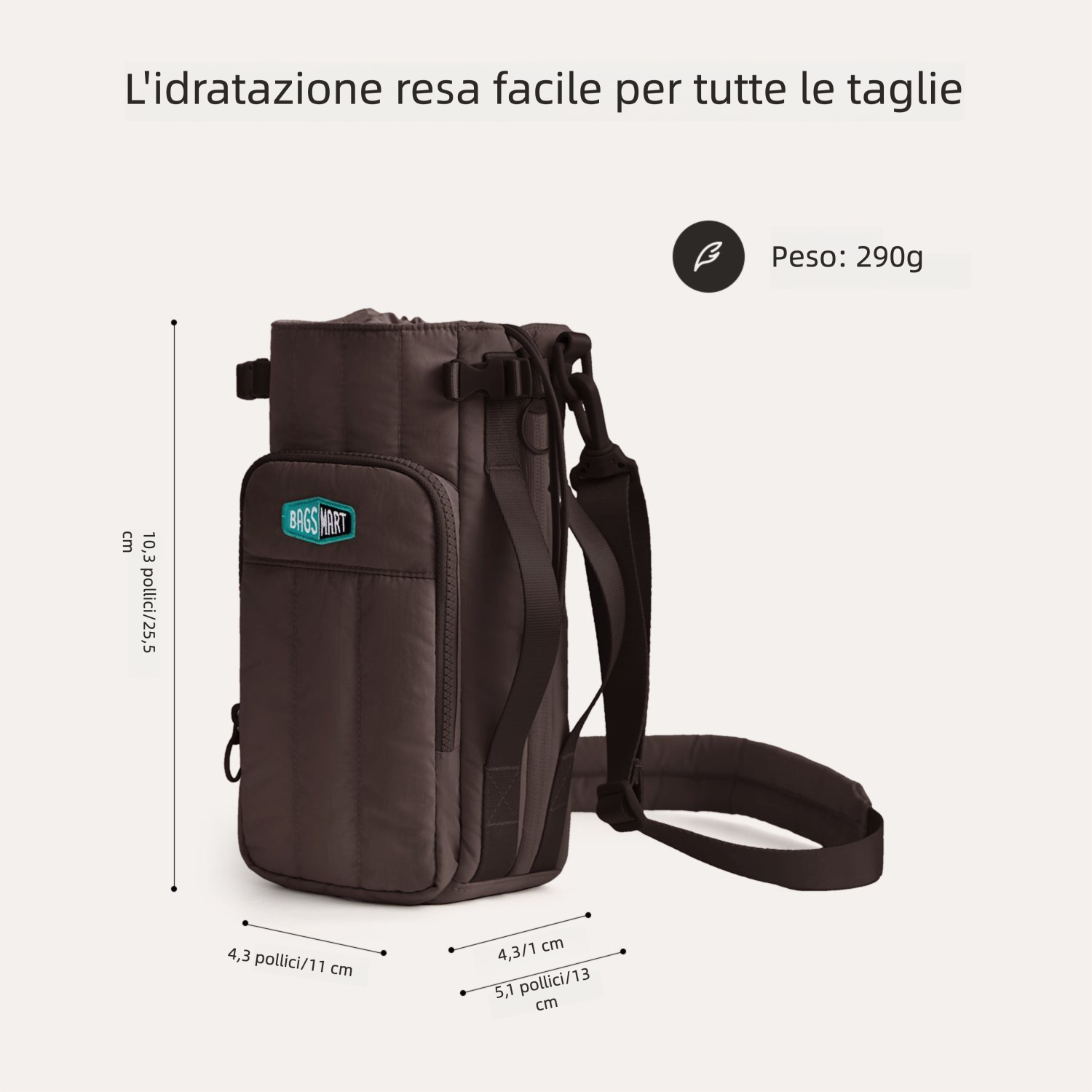 - Tracolla regolabile: 87–133 cm (34.25"–52.36")