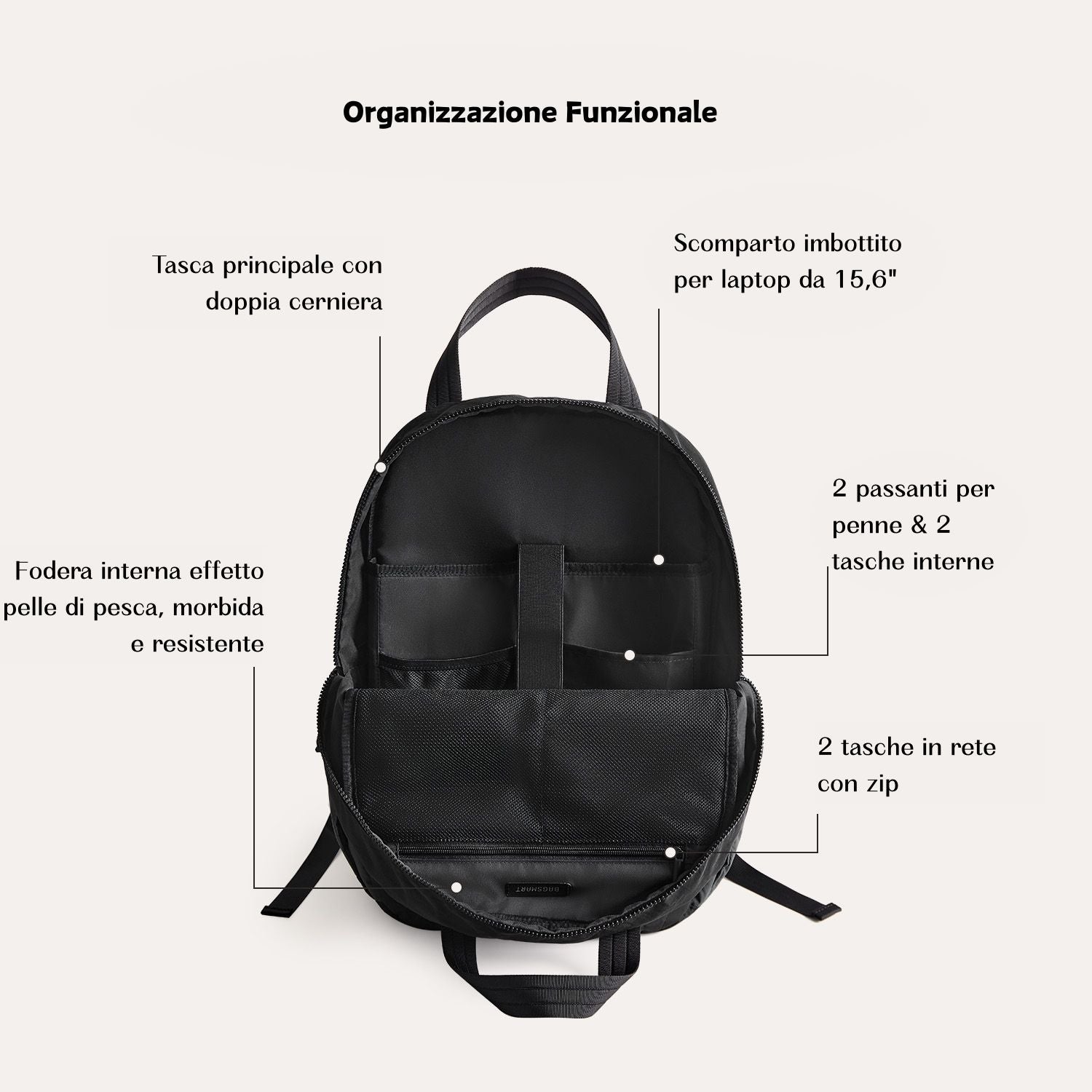 - Tasca frontale con chiusura magnetica piatta e anello portachiavi