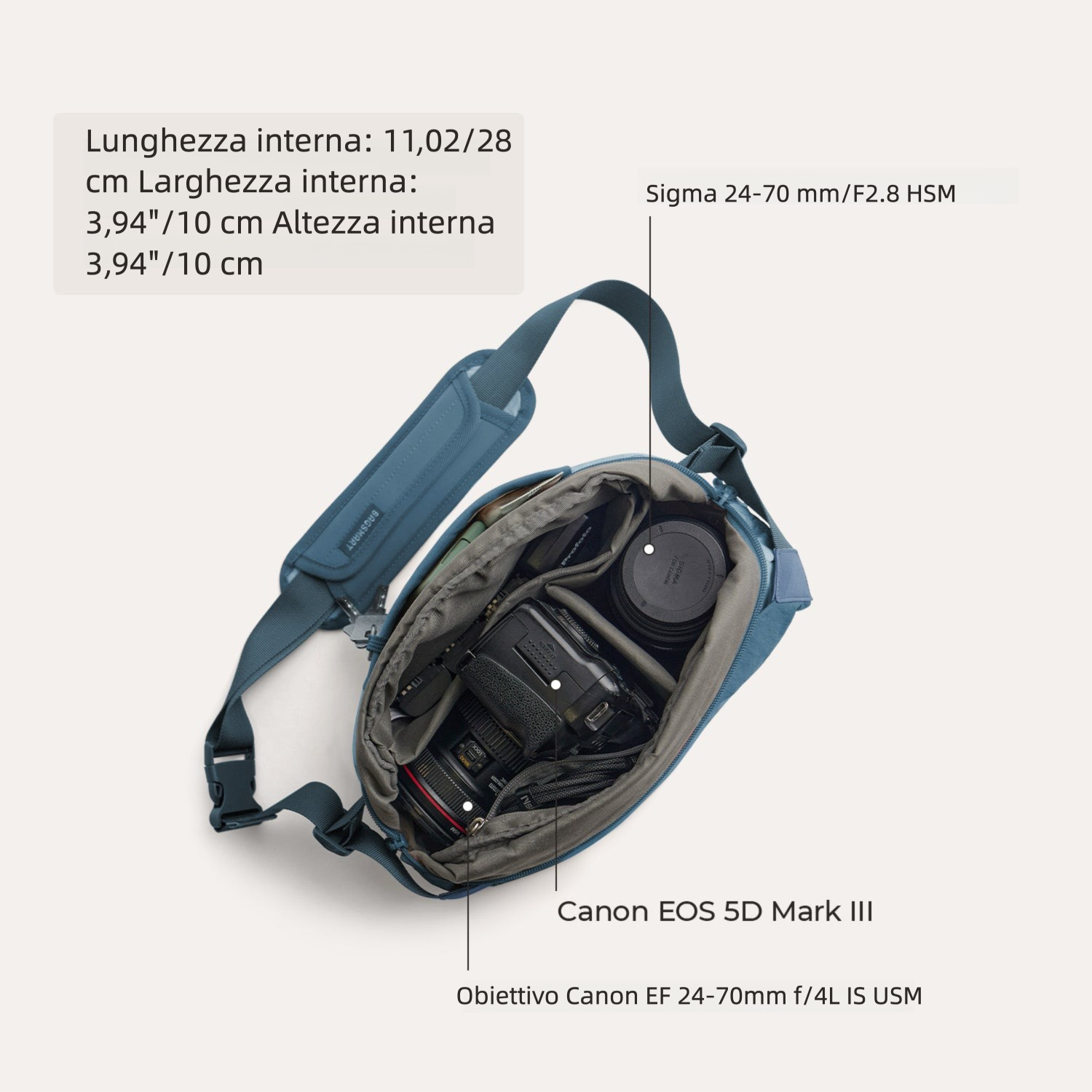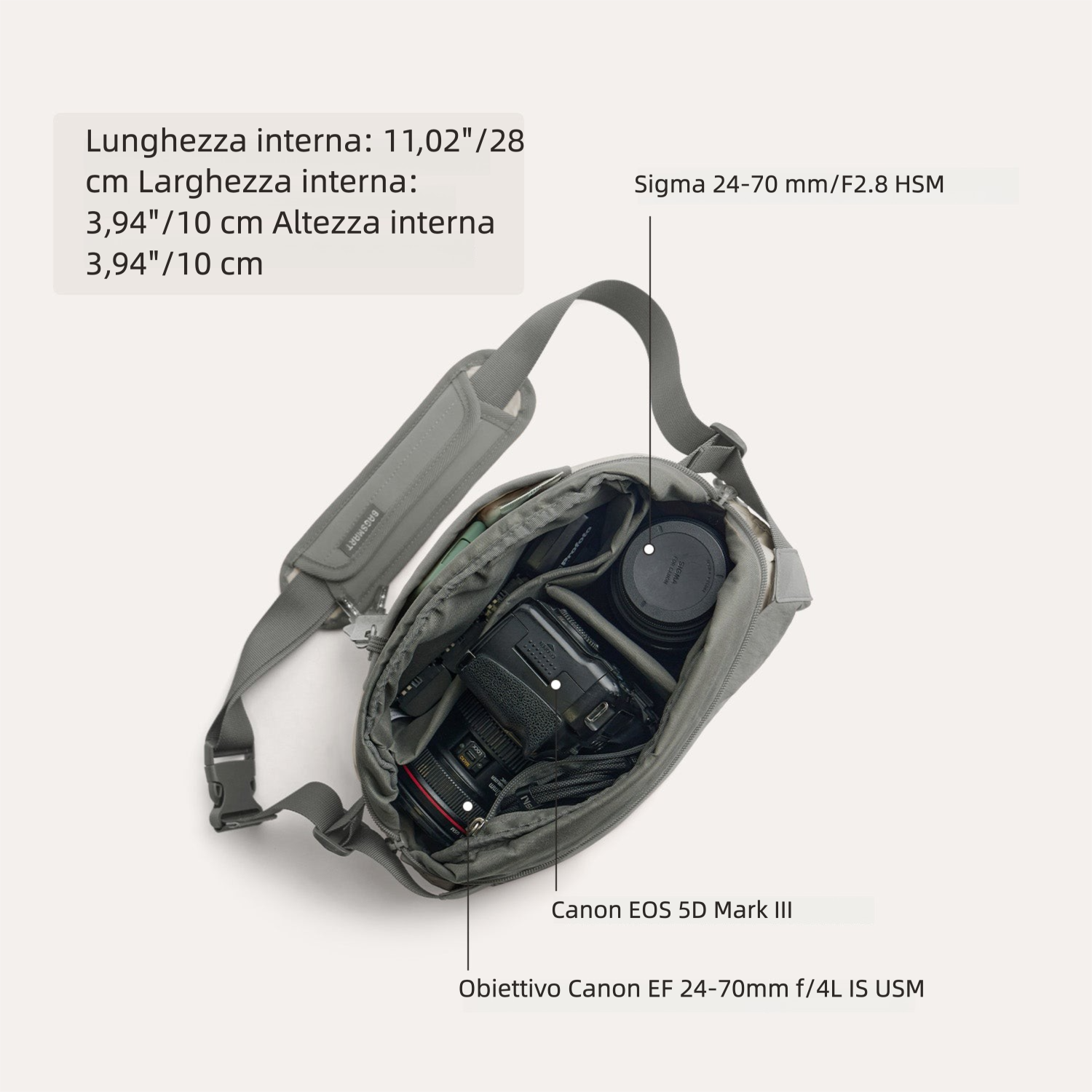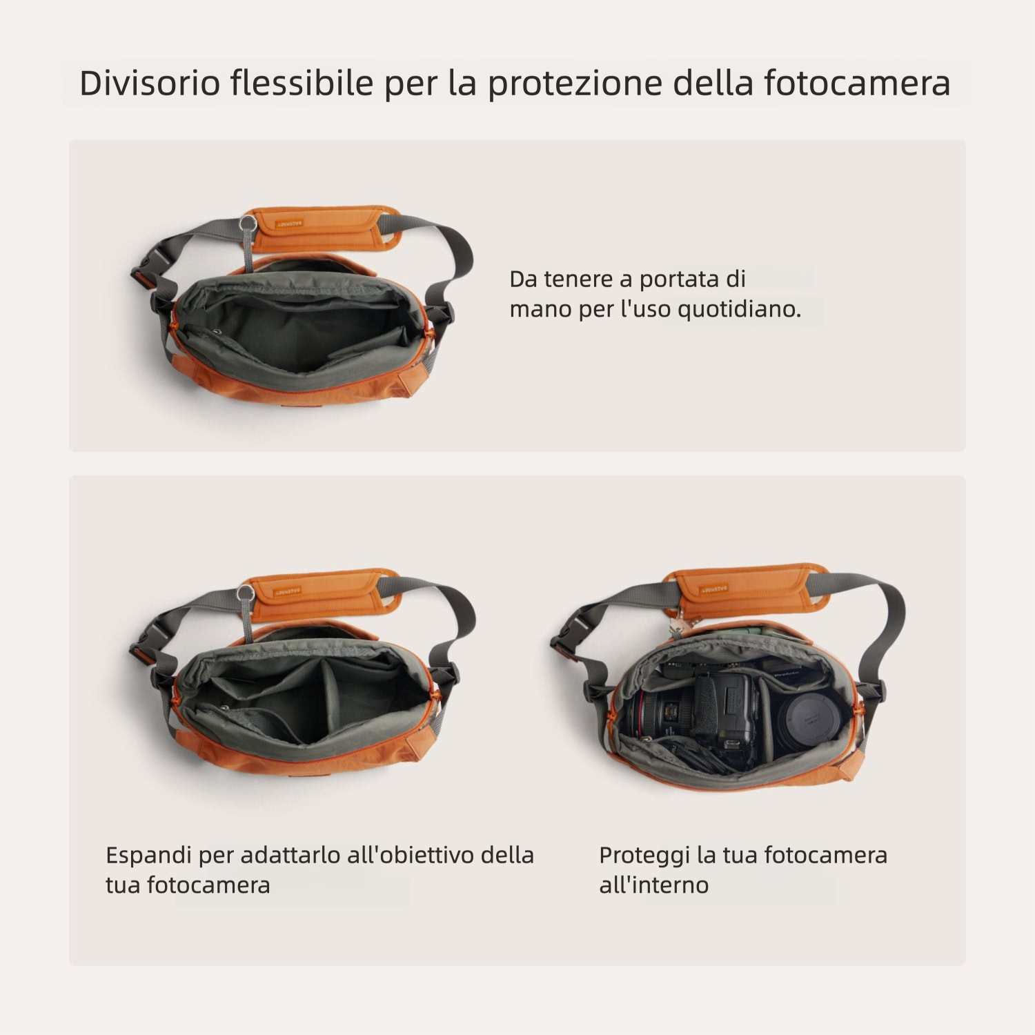 - Divisori flessibili per doppio uso: borsa foto e borsa quotidiana
