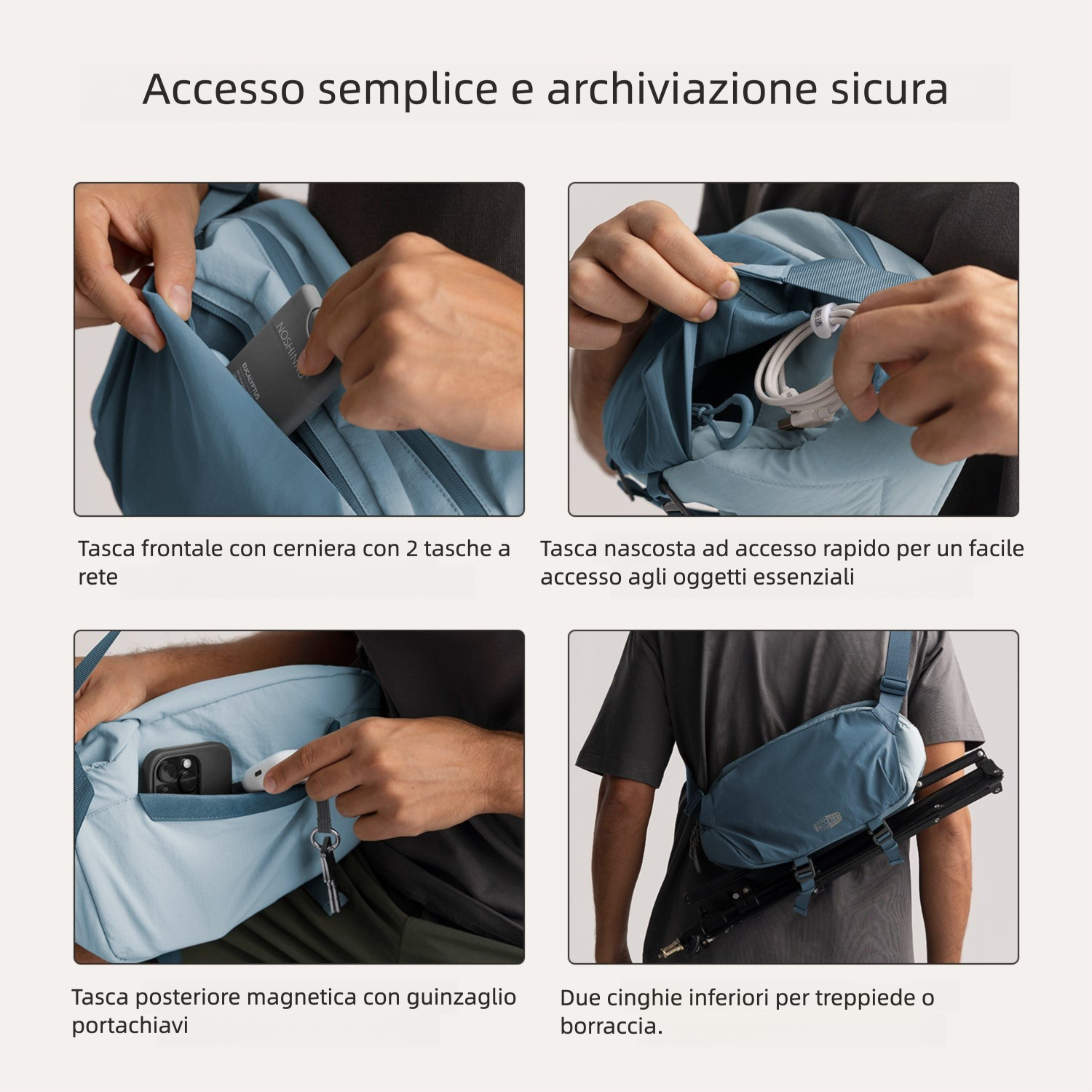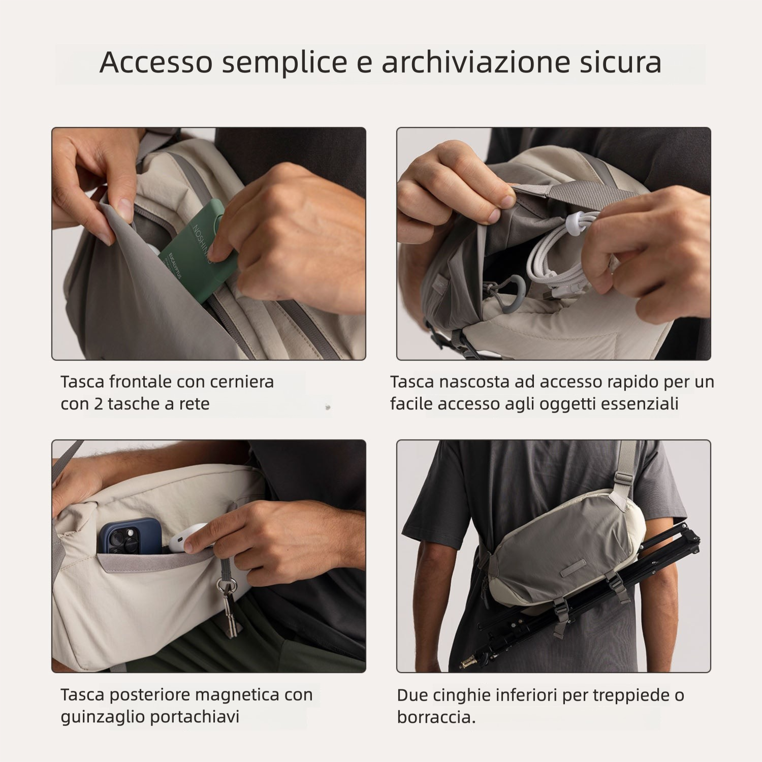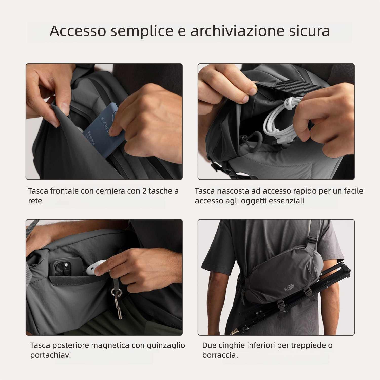 - Spazi separati per accessori e oggetti personali