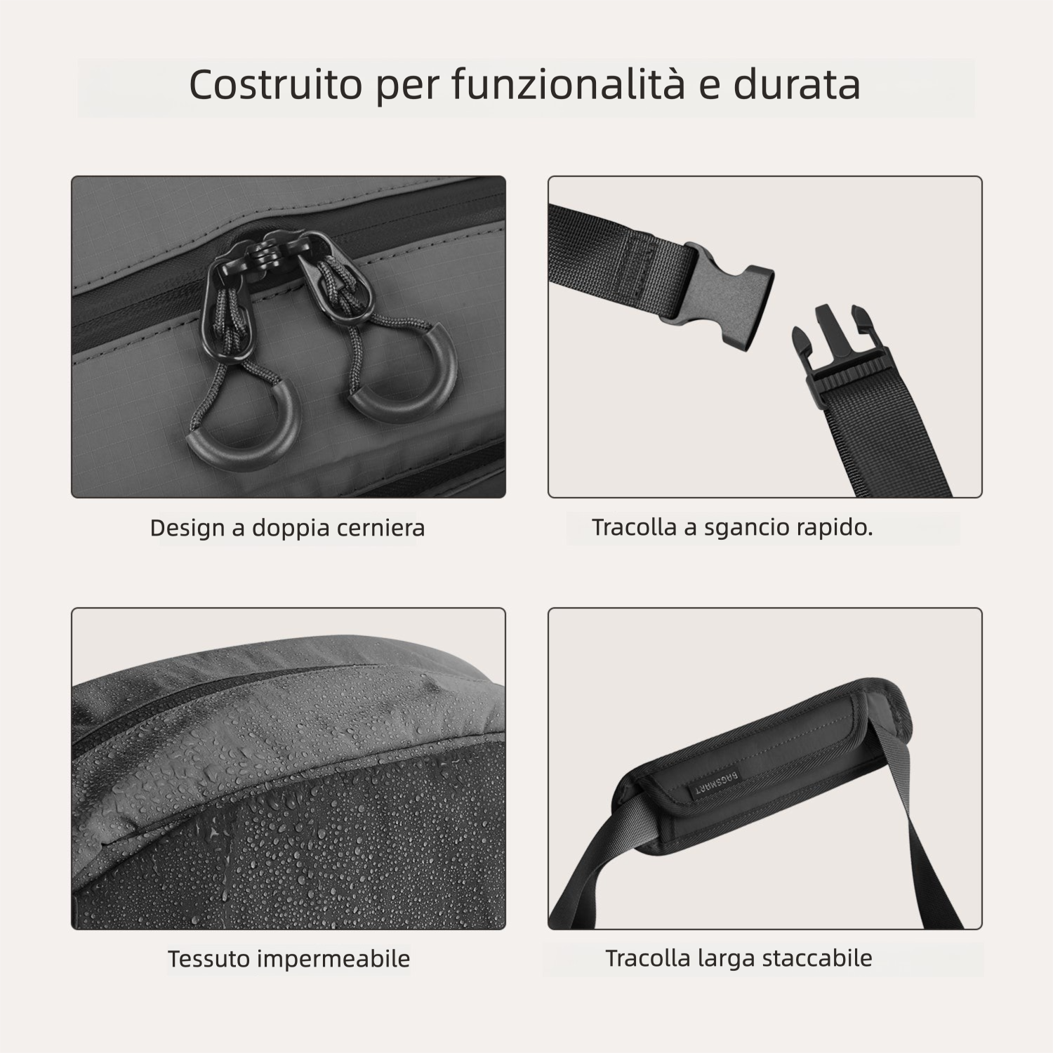 - Tessuto idrorepellente per tutte le stagioni