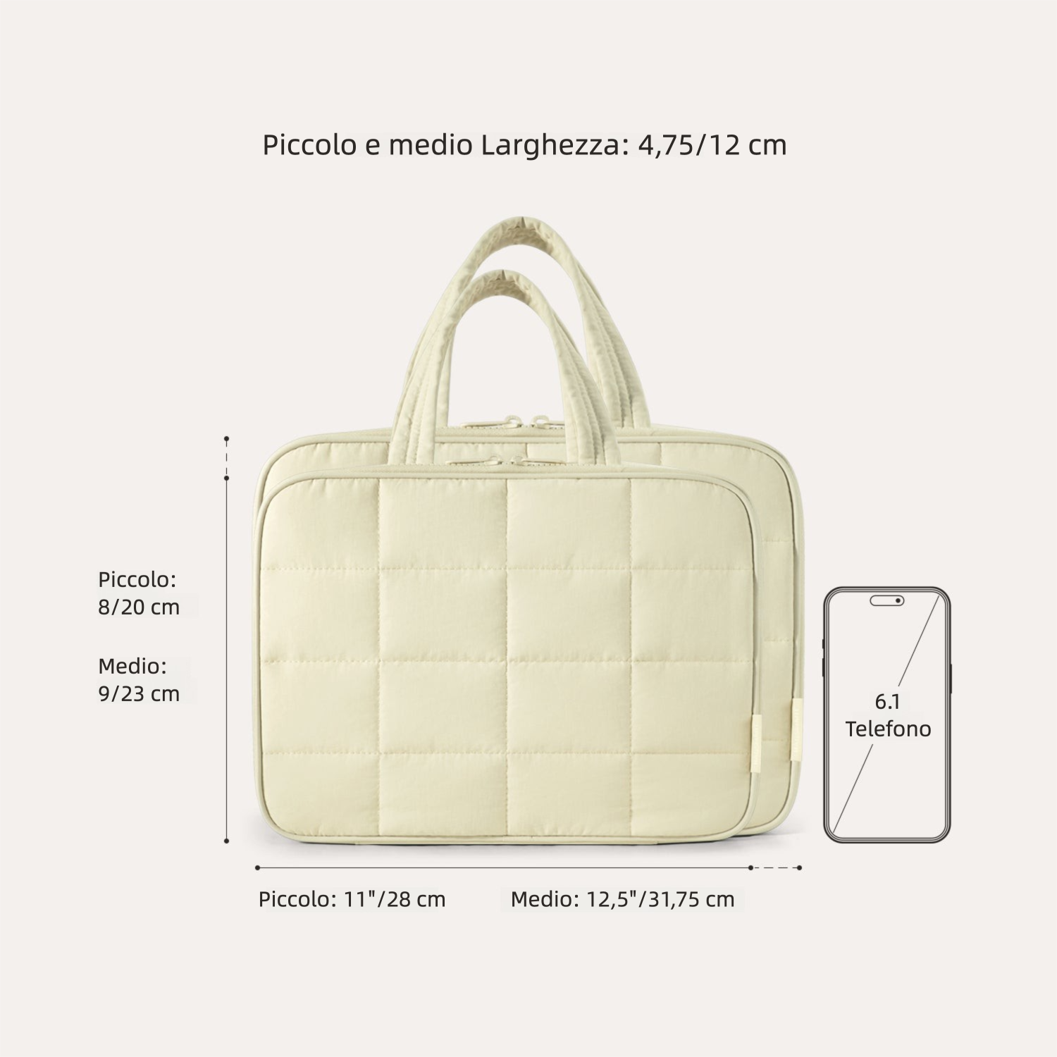 Organizzazione intelligente — quattro scomparti con zip per dividere tutto in modo ordinato senza mescolare gli oggetti.